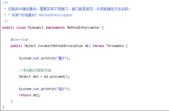 - aop联盟定义的通知类型,具有特性接口,必须实现,从而确定方法名称