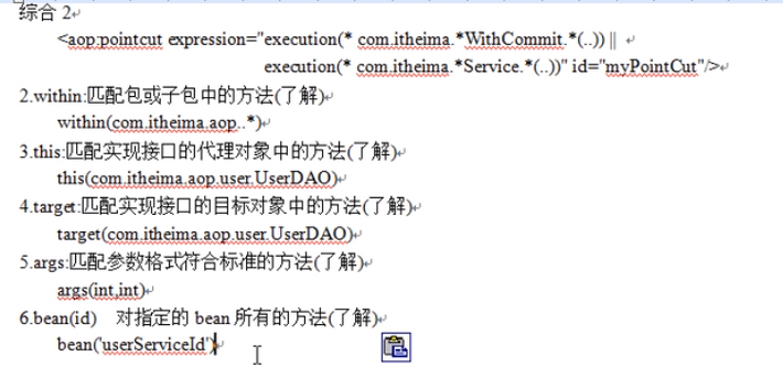 - Spring2.0以后新增了对AspectJ切点表达式支持
