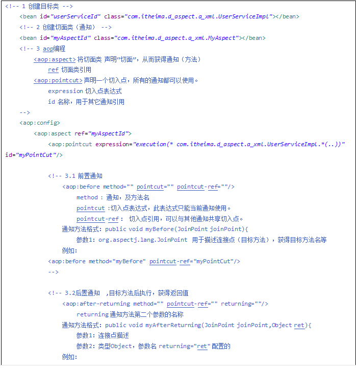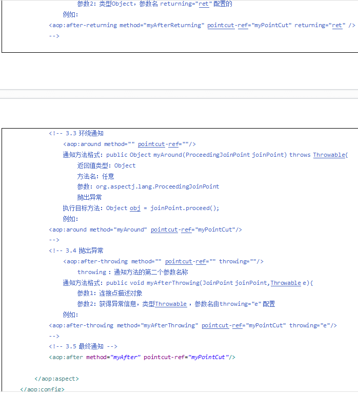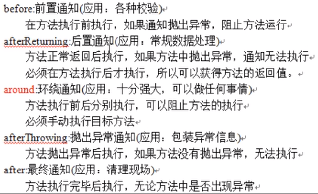 - AspectJ的通知类型,只定义类型名称以及方法格式