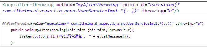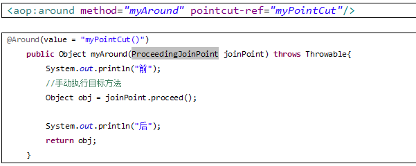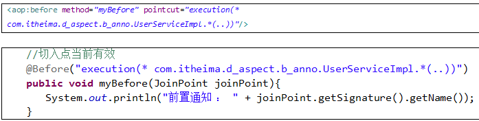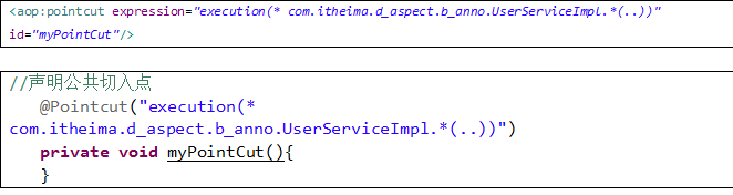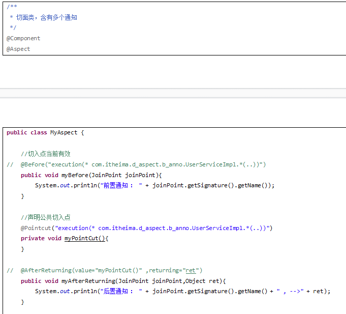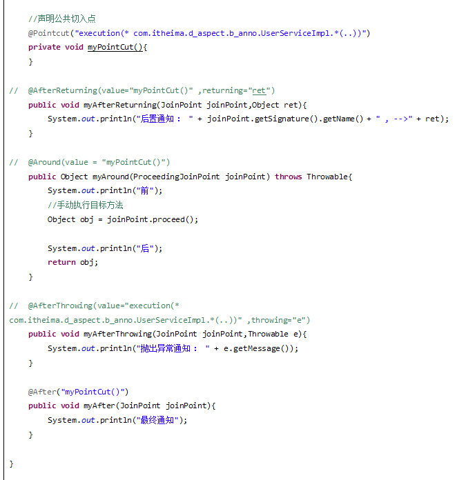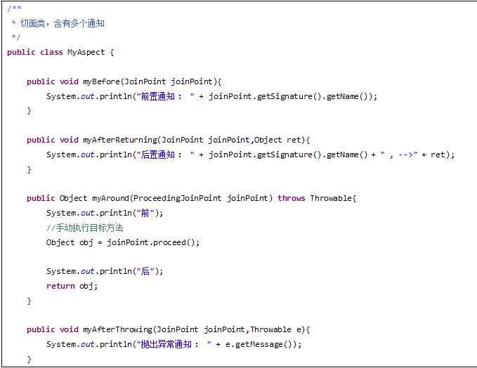 切面类:编写多个通知,采用aspectj 通知名称任意(方法名任意)