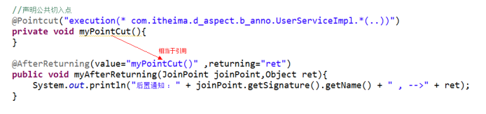Aspect(切面):是切入点pointcut和通知advice的结合