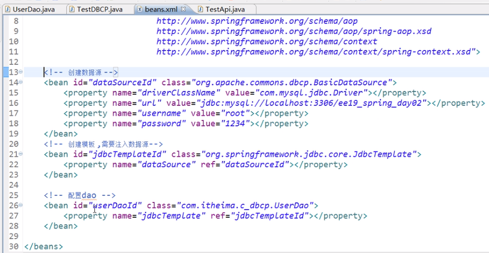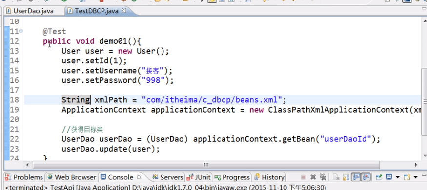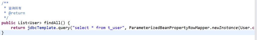 其他的和DBCP一样。如果把5.3中的update方法改成findAll方法,则代码如图: