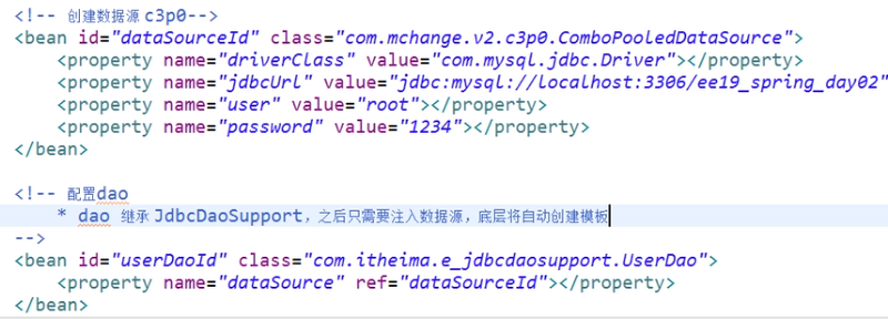 b、将所有的依赖都使用注解,@Autowired,默认不生效。为了生效,需要在xml中配置:<context:annotation-config,如图: