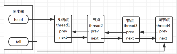 5.AQS同步器的结构:同步器拥有首节点(head)和尾节点(tail)。同步队列的基本结构如下: