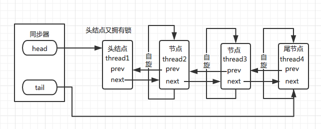 2.维护同步队列的FIFO原则,节点进入同步队列以后,就进入了一个自旋的过程,每个节点(后者说每个线程)都在自省的观察。