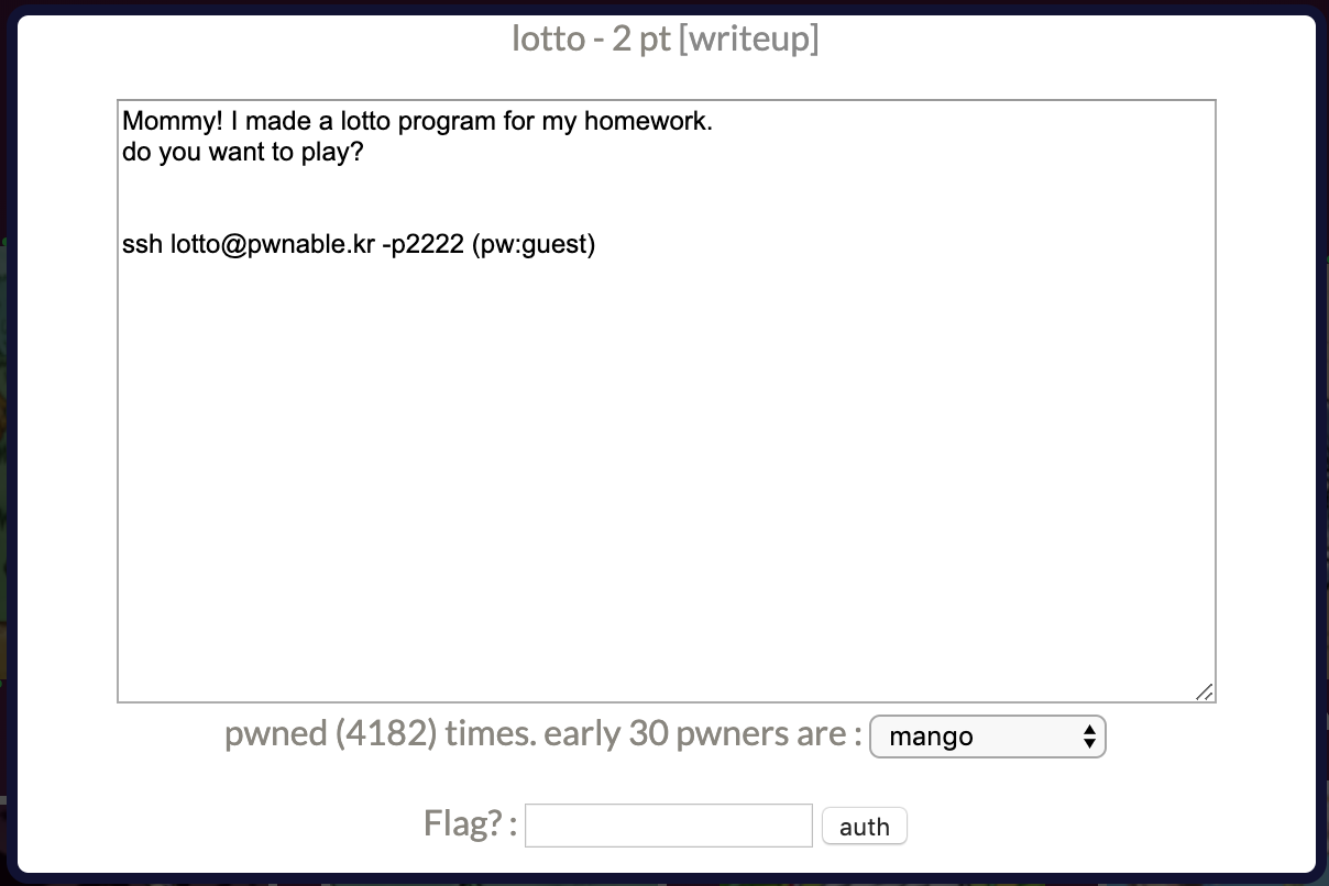 lotto@pwnable.kr's password: