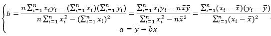 对上式化简,就可得到前文所述中学阶段求解回归方程的重要公式 |