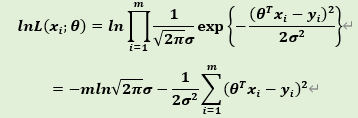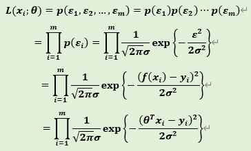 上面我们得到了回归函数的一般形式: 回归函数是我们通过已知数据建立的模型,与真实情况肯定存在误差。误差ε可以表示为: 这些误差将会形成一个分布,我们一般认为误差是随机的,是由众多因素造成的,并且是相互独立的,根据中心极限定理,这些误差服从正态分布,其概率密度函数如下: 然后建立关于无数样本(假设为上述数据集的样本个数m个)的联合概率密度函数: 显然,这就是似然函数,对其取对数得: 可以看出,要使似然函数最大化,就是要最小化 |