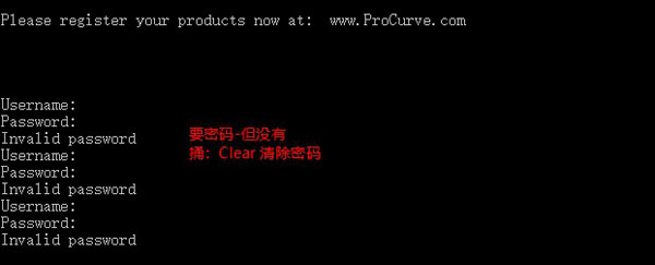 如果密码丢失点击交换机面板前的 clear 按钮。当点击 clear 按钮后将删除交换面的密码和用户名。