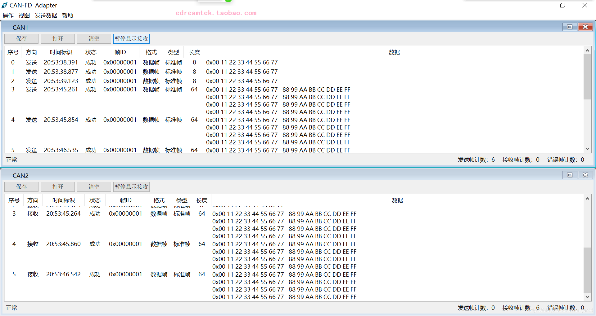 EDL位可以表示CAN报文还是CAN FD报文;BRS表示位速率转换,该位为隐性位时,从BRS位到CRC界定符使用转换速率传输,其他位场使用标准位速率,该位为显性时,以正常的CANFD总线速率传输;通过添加ESI位,可以很方便的知道当前发送节点所处的状态。