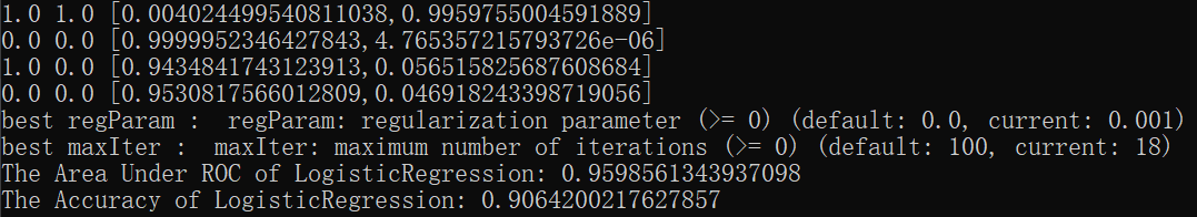 - elasticNetParam:取值范围[0,1]。取 0时,采用L2。取 1时,采用L1正则化。