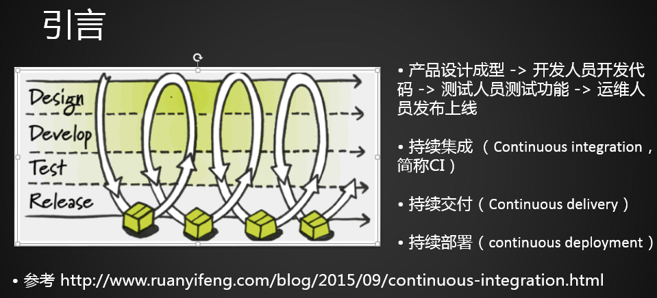 • 参考 http://www.ruanyifeng.com/blog/2015/09/continuous-integration.html