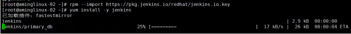 •安装yum 源 wget -O /etc/yum.repos.d/jenkins.repo 、https://pkg.jenkins.io/redhat/jenkins.repo