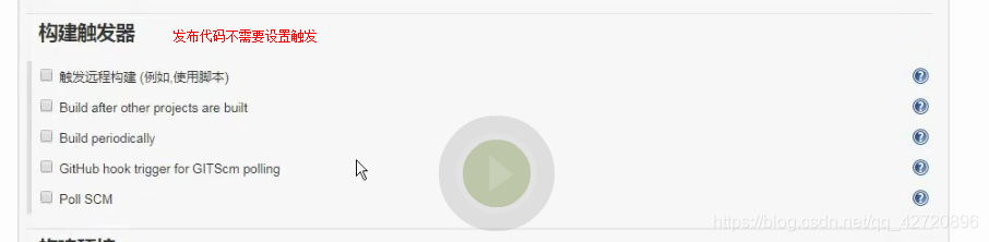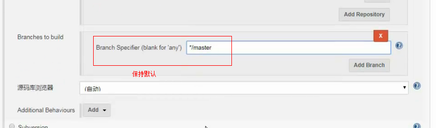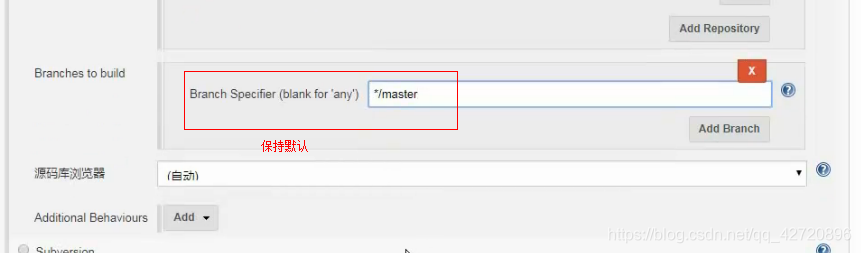 发布分支• “Branches to build” 默认为*/master,意思是发布的分支为master,保持默认