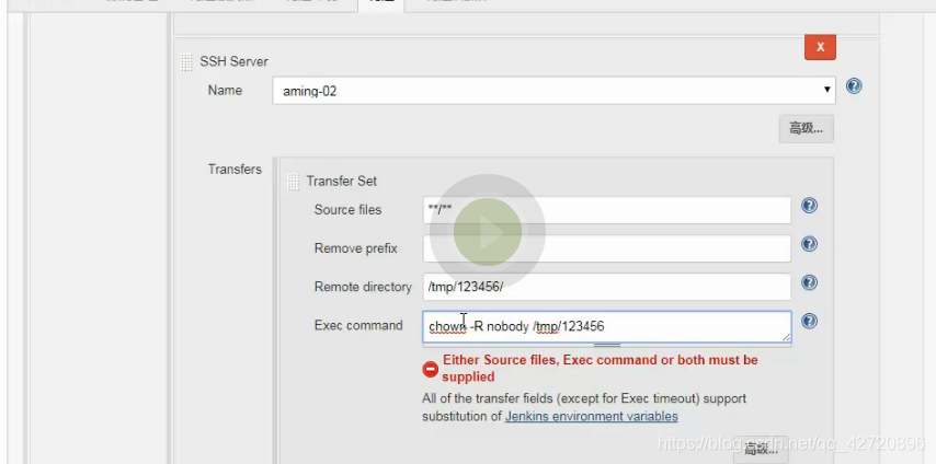 • SSH Server,Name 选择对应的服务器,Transfers, Source files填写**/**,表示全部文件