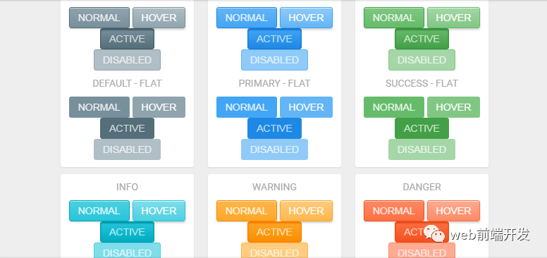 你可以使用单个类更改颜色,甚至可以将自己的颜色添加到混合中。 悬停状态使按钮在被按下到页面时感觉3D以及活动状态。