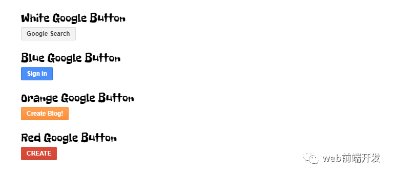 它们完全是用CSS3构建的,这些按钮展示了许多谷歌风格的效果,你可以构建它们看起来都很棒。 这是一个类似的例子,由Monkey Raptor在这些按钮上进行扩展,同时添加了一些其他按钮。
