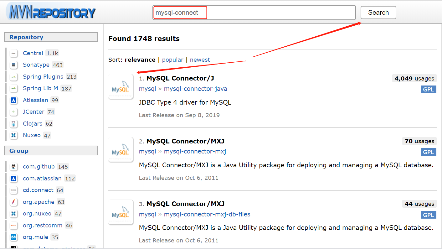 Maven官网:https://mvnrepository.com/open-source 步骤如下(以下载mysql连接驱动包为例): 来源:CSDN作者:陈天相链接:https://blog.csdn.net/qq_39706570/article/details/104036668 标签 仓库