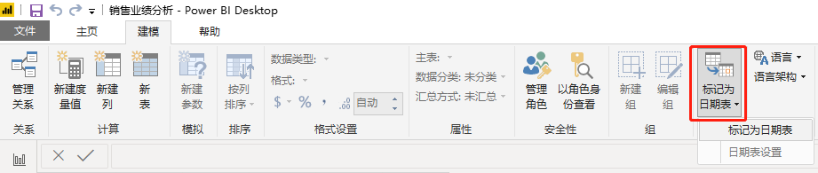 将Excel文件导入PowerBI并标记为日期表,勾选标记为日期表即可正常使用