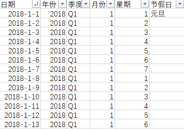 小结:Excel的方式处理日期表最大的优势在于可以随时进行改动,也可以添加列,方便在报表中使用数据。