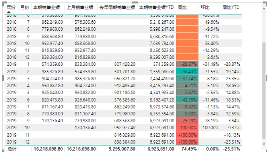 同比YTD= DIVIDE([本期销售业绩YTD]-[去年同期销售业绩YTD],[去年同期销售业绩YTD])
