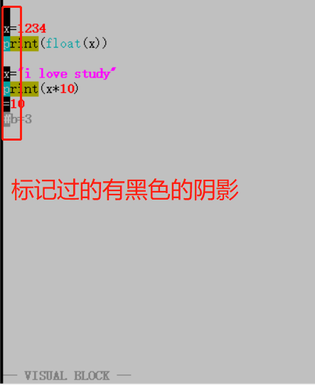 (3)按j或者k,用鼠标或者上下键选中多行,把需要注释的行标记起来,如下图: