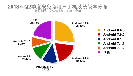 2018年Q2季度全球安兔兔用户手机系统版本的分布情况