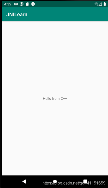 Java_com_example_jnilearn_MainActivity_myStringFromJNI然后在cpp目录的natie-lib.cpp中实现:extern "C" JNIEXPORT jstring JNICALL Java_com_example_jnilearn_MainActivity_myStringFromJNI (JNIEnv *env, jobject) { std::string hello = "my Hello from C++"; return env->NewStringUTF(hello.c_str()); } -