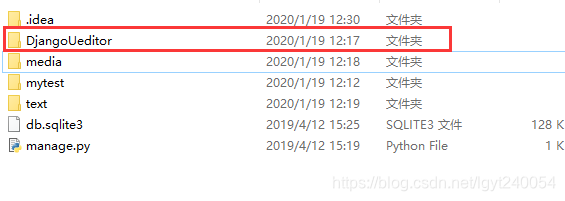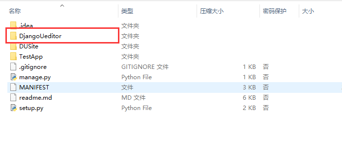 4,把DjangoUeditor当作我们项目的应用,并放到项目的根目录处