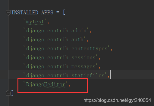 5,在setting加入DjangoUeditor应用,并且加入上传图片时的路径设置