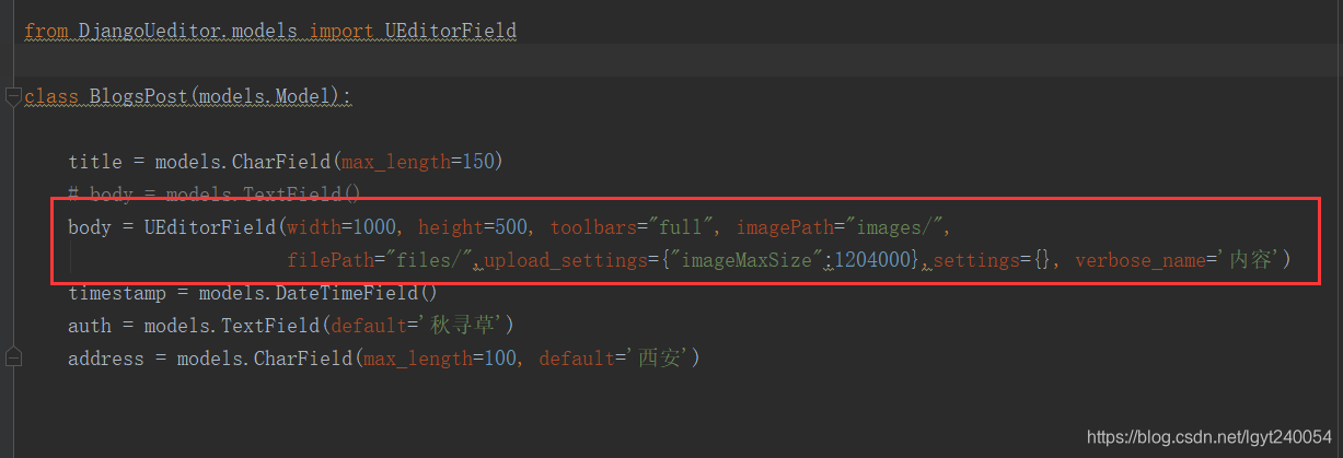 8,在mytest(也就是要用富文本编辑器的应用)的models.py里添加编辑字段