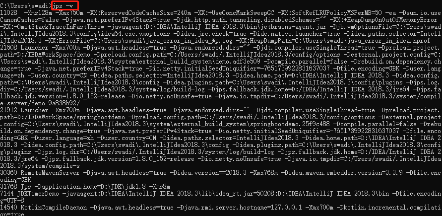 jps是jdk提供的一个查看当前java进程的小工具。查找当前用户的Java进程,而不是当前系统中的所有进程。