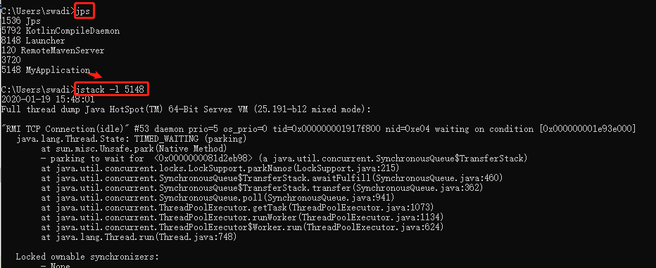 jstack是jdk自带的线程堆栈分析工具,使用该命令可以查看或导出 java 应用程序中线程堆栈信息。