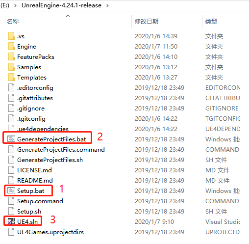 二、按照下图顺序依次下载文件、加载初始化,需要等很久,最后打开UE4.sln编译