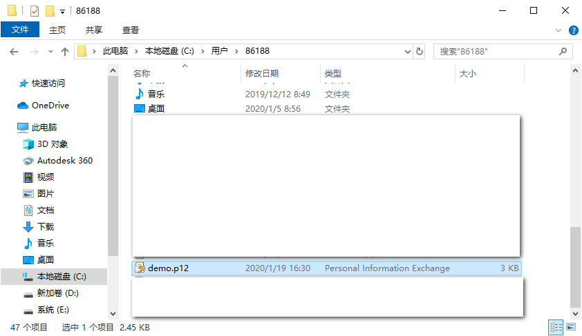 执行完成之后,可以在系统当前用户目录找到一个 demo.p12 文件。
