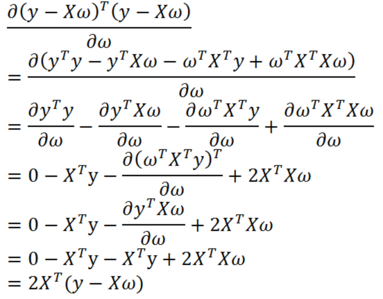现在,我们用矩阵表示的平方误差和对w进行求导: