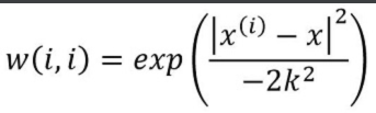 weights[j, j] = np.exp(diffMat * diffMat.T/(-2.0 * k**2))