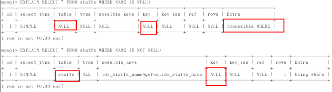 EXPLAIN SELECT * FROM staffs WHERE NAME = 'July';