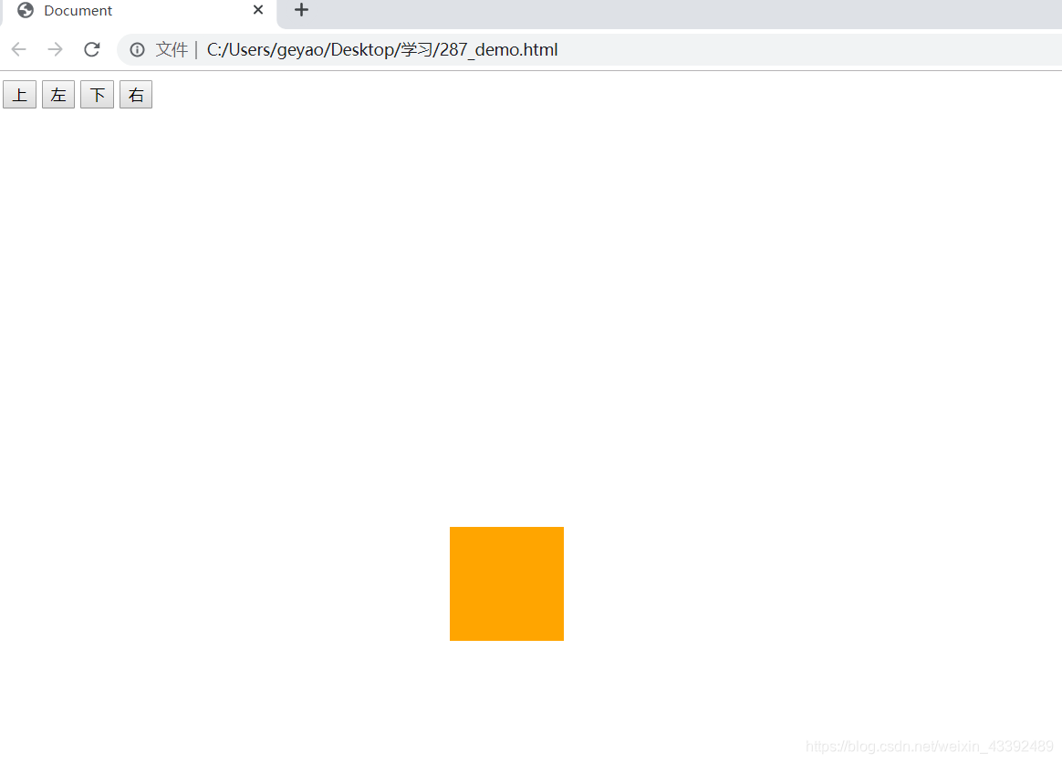 div{width: 100px;height: 100px;background-color: orange;position:absolute;left: 400px;top: 400px;}
