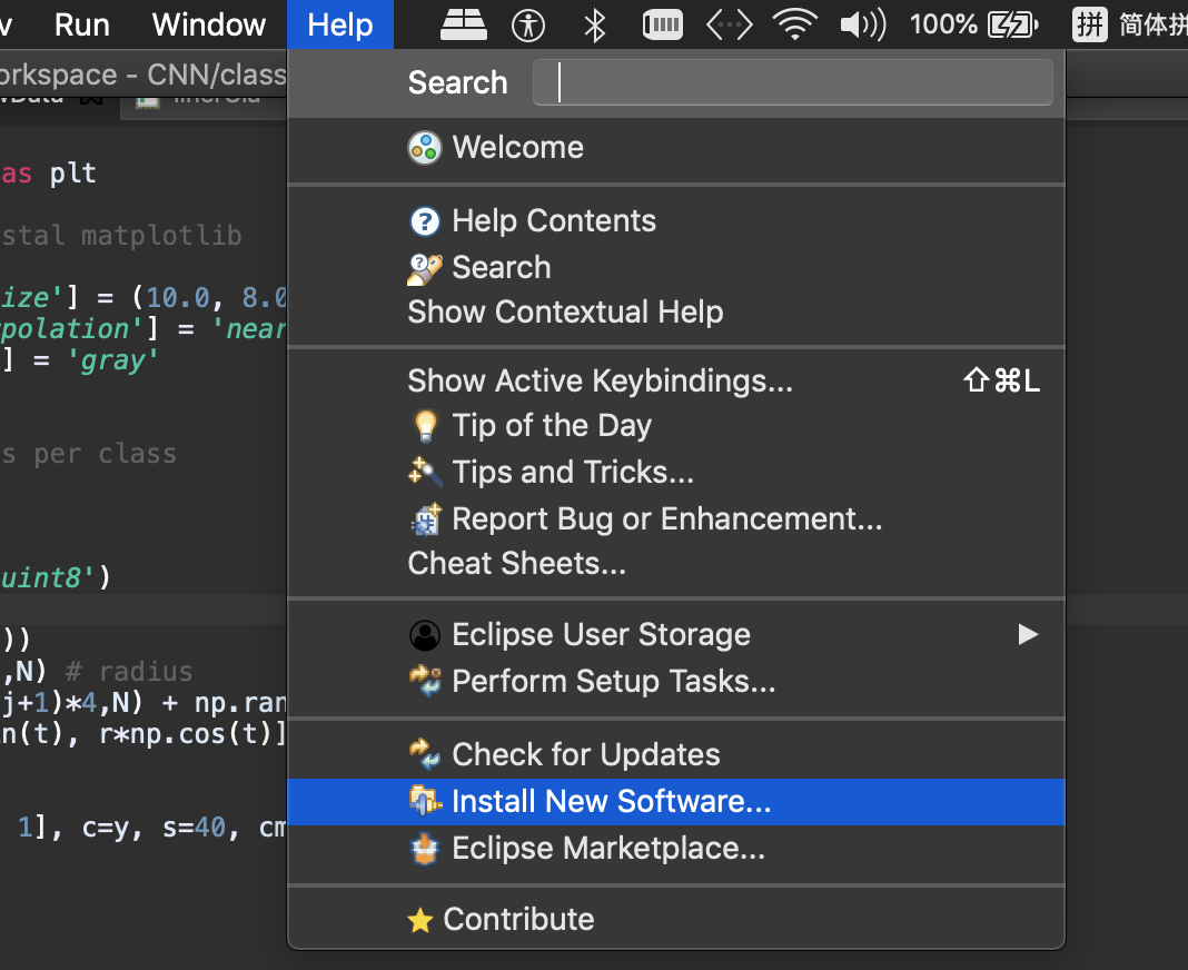 找到eclipse——Help——Install New Software选项