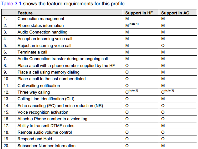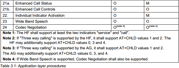 当且仅当SDP服务发现AH和AG双方均支持“Call waiting and 3-way calling”,在HFAG通过AT+CHLD命令发来的其对呼叫等待和多方电话的支持,对这种情况,HF indicator不要设置该比特位,AG也不要在+BRSF命令中设置该比特位。