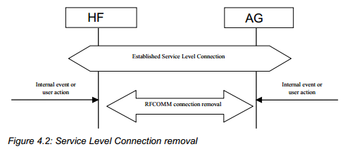 - 如果在HF或AG中禁用蓝牙功能,则应启动“服务级别连接解除”程序。