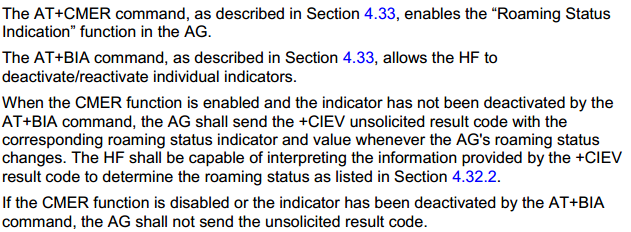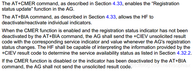 AG侧会一直保持indicator状态跟新功能使能直到收到AT+CMER指示其关闭或者HF和AG端的Service Level Connection连接断开。