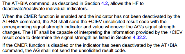 至此HF可能发送AT+BIEV命令告知AG其使能的HF indicator发生变化。