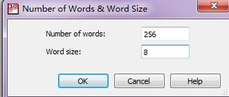 Number of words:可寻址的存储单元数,对于8bit地址线,此处选择256;