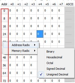 - 右键单击左侧地址值,可以修改地址和数据的显示格式;