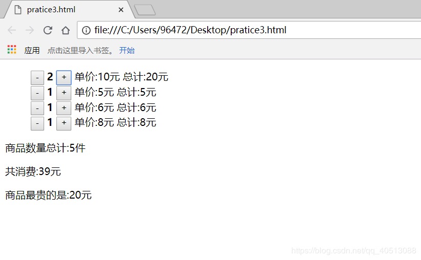 (5)在JS中用for循环来计算总价钱和比较最贵的商品;