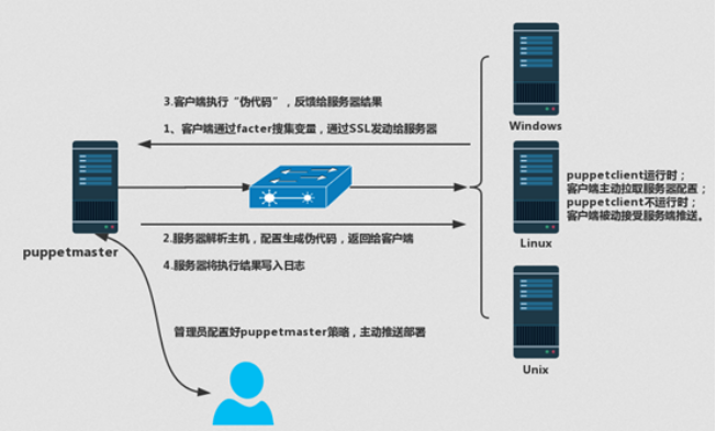 实现这一目的,我们将引入一批工具,这批工具是 “可编程”的,管理人员只需要为 这批工具写上几行“代码”,它便会自动完成所有的工作,这批工具就是自动化puppet