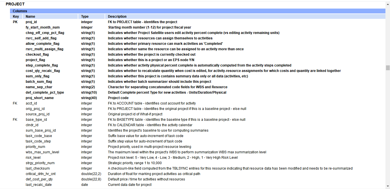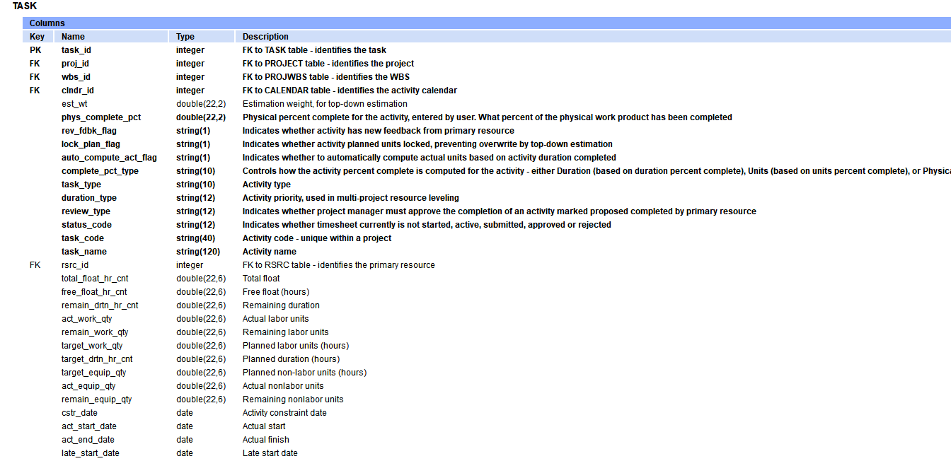 | CALENDAR | PCATUSER | RSRC | TRSRCSUM | FORMCATG | PROJWBS | TASK | VIEWPREF |