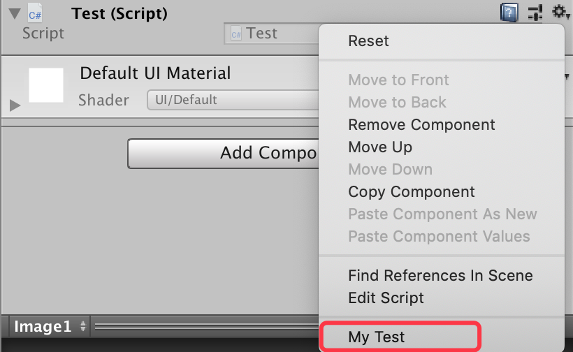 [AddComponentMenu("Test/MyTest")]